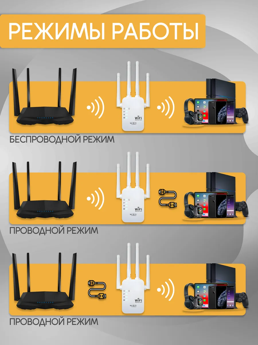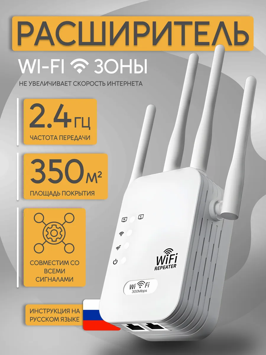 Мы предлагаем по-настоящему эффективный расширитель зоны покрытия Wi-Fi: для больших помещений, загородных домов и квартир со слабым сигналом. Идеально подходит для устранения "мертвых зон" в вашем доме! Это устройство создает стабильную сеть на площади до 350 кв.м!